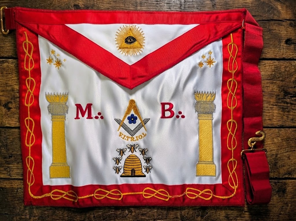 En France, contrairement à d’autres pays, les tabliers d’Apprenti sont rarement brodés — la sobriété faisant partie de l’apprentissage symbolique.