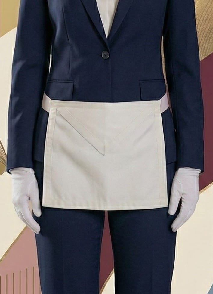 Historiquement, les tabliers d’Apprenti étaient même plus grands que ceux des Maîtres — une logique opérative évidente : l’ouvrier encore malhabile devait se protéger davantage des éclats de pierre que le Maître expérimenté. Cette réalité pratique portait déjà en elle une dimension symbolique : l’Apprenti nécessite plus de protection pendant qu’il apprend à maîtriser ses outils.
